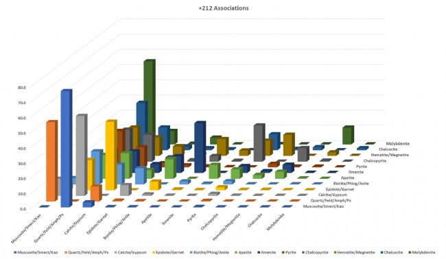 蔡司Mineralogic 3D系統(tǒng)給出的礦物連生關(guān)系統(tǒng)計信息
