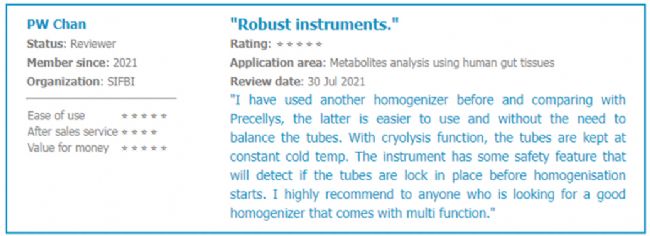 Bertin Instruments的Precellys Evolution組織研磨器獲得了SelectScience金質(zhì)印章,以表彰它的高質(zhì)量性能獲得了全球科學家的高度認可,代表著SelectScience上始終獲得最高客戶評論評級的前0.1%的產(chǎn)品,旨在幫助全球科學家一目了然地看到同行最喜愛的儀器和服務。Precellys Evolution組織研磨器因獲得全球科學家100多篇評論而獲得金獎,平均5顆星中有4.5顆星的評價令人印象深刻。
