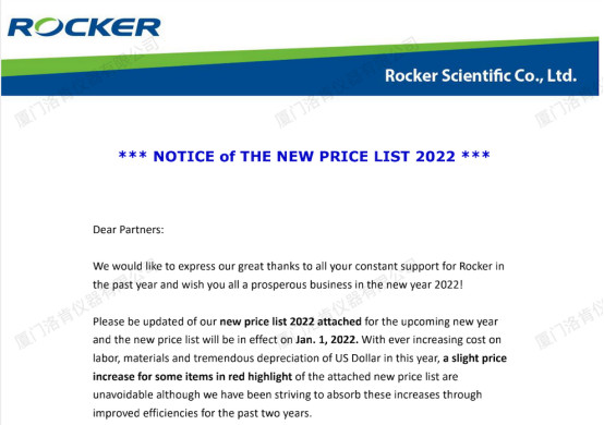 洛科儀器2022年部分產(chǎn)品漲價(jià)通知