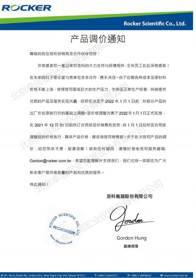 非常感謝您一直以來(lái)對(duì)洛科的大力支持與傾情相伴,全體員工在此深表感謝!在未來(lái)的日子里還望與貴單位多多合作,攜手共進(jìn)。由于近期各種成本及原材料價(jià)格不斷上漲,使得我司面臨巨大的生產(chǎn)壓力,為保證正常生產(chǎn)經(jīng)營(yíng),持續(xù)提供優(yōu)質(zhì)的產(chǎn)品及服務(wù)實(shí)現(xiàn)共贏,經(jīng)研究決定于 2022 年 1 月 1 日起,對(duì)部分產(chǎn)品的出廠價(jià)在原執(zhí)行價(jià)的基礎(chǔ)上調(diào)整。該價(jià)格調(diào)整方案于2022年1月1日正式實(shí)施,在 2021 年 12 月 31 日前所訂合同按現(xiàn)價(jià)銷售和發(fā)貨,自 1 月 1 日后所簽合同按調(diào)整后的價(jià)格執(zhí)行,具體產(chǎn)品價(jià)格,請(qǐng)咨詢我司銷售部。