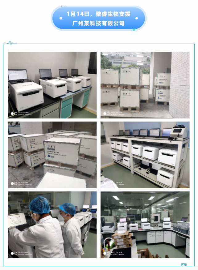 雅睿生物有效助力全國各大核酸檢測(cè)基地,在一次次的裝機(jī)、實(shí)驗(yàn)、檢測(cè)中不斷證明多聯(lián)機(jī)功能,升級(jí)后的設(shè)備可由一臺(tái)電腦同時(shí)控制多臺(tái)設(shè)備進(jìn)行檢測(cè)。在同樣的人力資源下,將檢測(cè)效率提升了4倍以上,在歷次的疫情防控戰(zhàn)疫中,經(jīng)受住了考驗(yàn)。