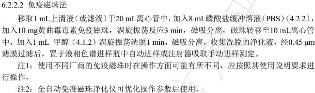 標(biāo)準(zhǔn)制定背景: 黃曲霉毒素(Aflatoxin)是黃曲霉、寄生曲霉等真菌產(chǎn)生的次級(jí)代謝產(chǎn)物,被世界衛(wèi)生組織的癌癥研究機(jī)構(gòu)劃分為Ⅰ類(lèi)致癌物,同時(shí)又是一種毒性極強(qiáng)的劇毒物質(zhì),廣泛存在于各種食物中。玉米,花生,大米,小麥等谷物及其副產(chǎn)品是黃曲霉毒素的主要來(lái)源,同時(shí)飼料中的黃曲霉毒素B1經(jīng)過(guò)動(dòng)物代謝后產(chǎn)生的黃曲霉毒素M1仍然具有很強(qiáng)的毒性和致癌性,也廣泛存在牛奶,血液,組織等食品中。黃曲霉毒素作為肝癌的三大誘因之一,也是誘發(fā)胃癌,腸癌等疾病的主要原因之一,對(duì)人類(lèi)的健康構(gòu)成很大威脅。所以黃曲霉毒素B1的檢測(cè)方法在生產(chǎn)和人類(lèi)生活中具有重要意義。 目前國(guó)內(nèi)檢測(cè)黃曲霉毒素B1和M1的方法主要有薄層色譜法(TLC)、液相色譜法、酶聯(lián)免疫法(EUSA)、液相色譜串聯(lián)質(zhì)譜法等。 對(duì)于農(nóng)產(chǎn)品質(zhì)量安全監(jiān)管科的工作人員需要進(jìn)行現(xiàn)場(chǎng)的快速檢測(cè)、以及移動(dòng)的實(shí)驗(yàn)室、或流動(dòng)檢測(cè)車(chē)等需要快速檢測(cè)相關(guān)黃曲霉毒素B1和M1,傳統(tǒng)大型儀器檢測(cè)的方式受到了很大限制。膠體金檢測(cè)卡、ELISA試劑盒等快檢產(chǎn)品準(zhǔn)確度無(wú)法達(dá)到液相色譜法等的水平。因此,非常有必要采用便攜式儀器快速準(zhǔn)確測(cè)定食品中黃曲霉毒素B1和M1。標(biāo)準(zhǔn)亮點(diǎn): 《糧油中黃曲霉毒素B1的快速檢測(cè)便攜式液相色譜法》、《乳和乳制品中黃曲霉毒素M1的快速檢測(cè) 便攜式液相色譜法》標(biāo)準(zhǔn),其中樣品前處理使用了康源泰博自主研發(fā)生產(chǎn)的全自動(dòng)免疫磁珠凈化系統(tǒng)(包括免疫磁珠試劑盒和磁珠凈化儀),標(biāo)準(zhǔn)文本中相應(yīng)產(chǎn)品的情況: