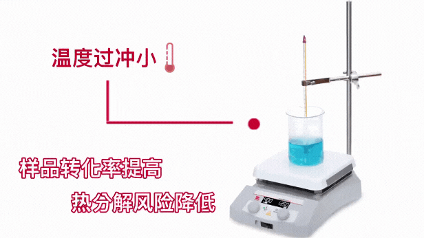 無須為過溫控制困擾,GuardianTM 3000 加熱磁力攪拌器控制溫度過沖能力強,避免對熱分解或熱敏性樣品造成嚴(yán)重?fù)p失,以及特定溫度要求的催化劑失去功效,以此可以提高樣品轉(zhuǎn)化率。