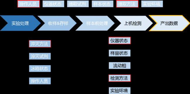質(zhì)控更多是圍繞實(shí)驗(yàn)來開展的,因此我們需要圍繞樣本的收集、儲(chǔ)存、提取等環(huán)節(jié),從“人機(jī)料法環(huán)”五個(gè)方面來考慮對(duì)實(shí)驗(yàn)質(zhì)量產(chǎn)生影響的因素。