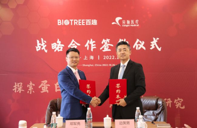 10月26日,上海百趣生物醫(yī)學科技有限公司(以下簡稱:百趣生物)與應脈醫(yī)療科技(上海)有限公司(以下簡稱:應脈醫(yī)療)在上海舉行戰(zhàn)略合作簽約儀式。
