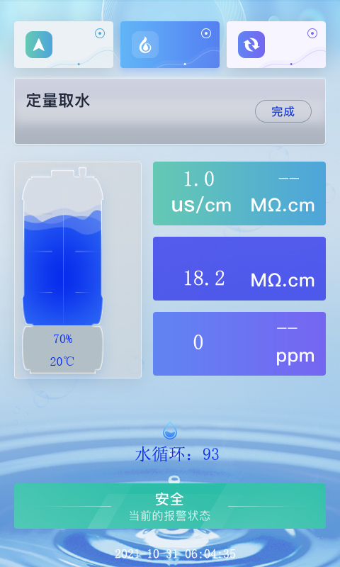 智能化、自動化,設置定時(定量)取水,無需人工看管;RO膜自動沖洗,UP自動循環(huán),確保水質安全,延長耗材壽命;耗材到期自動提醒;多級密碼菜單,可選配物聯(lián)網(wǎng)模塊。