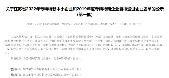 近日,根據(jù)江蘇省工業(yè)和信息化廳發(fā)布的《關(guān)于江蘇省2022年專精特新中小企業(yè)和2019年度專精特新企業(yè)復(fù)核通過企業(yè)名單的公示(第一批)》,蘇州雅睿生物技術(shù)股份有限公司憑借多年以來在分子診斷及基因檢測領(lǐng)域的突出表現(xiàn)和優(yōu)質(zhì)口碑,被認(rèn)定為2022年度江蘇省專精特新中小企業(yè)。
