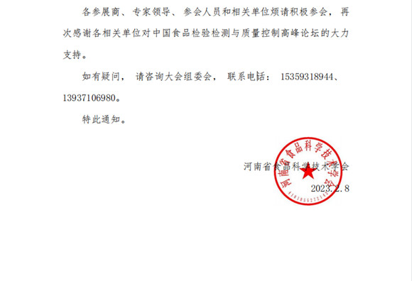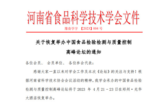 關(guān)于恢復(fù)舉辦中國食品檢驗檢測與質(zhì)量控制高峰論壇的通知
