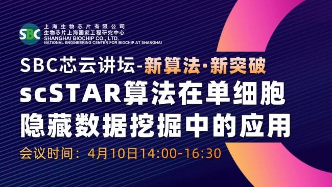 4月10日(周一),SBC芯云講壇:新算法,新突破--scSTAR算法在單細胞隱藏數(shù)據(jù)挖掘中的應用,特邀復旦大學醫(yī)學院PI研究員,英國帝國理工大學榮譽研究員,上海市浦江人才郝潔博士,為大家介紹這項新算法所帶來的突破性研究進展。