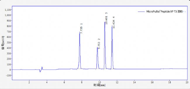 色譜柱:MicroPulite® Peptide XP tC18 4.6*250mm、MicroPulite® Peptide XP T3 4.6*250mm、MicroPulite® Peptide PHS tC18 4.6*250mm