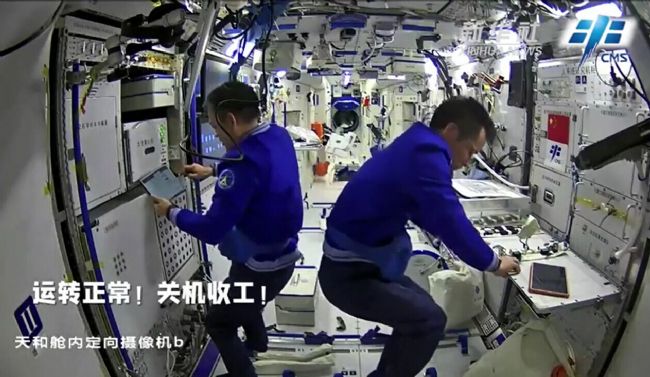 航天員在天和核心倉內(nèi)安裝調(diào)試太空離心機(jī)