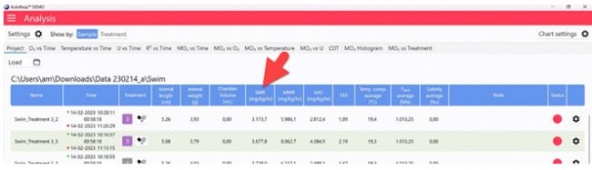 系統(tǒng)支持高通量的代謝測量,可同時進行4通道、8通道、16通道及以上的同步代謝測量,且通過Autoresp全自動測量軟件實時記錄耗氧率隨時間的變化; 自動計算顯示平均耗氧量、相關系數(shù)R2、計算標準代謝率Standard Metabolic Rate(SMR)、最大代謝率Maximum Metabolic Rate(MMR)、臨界氧含量P crit、最佳游泳速度。