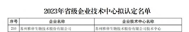 雅睿生物獲“省級(jí)企業(yè)技術(shù)中心”認(rèn)定