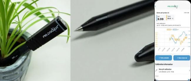 美國Spectrum公司近期發(fā)布的新一代FieldScout系列pH計,使用ISFET非玻璃離子選擇場效應晶體管電極,通過移動設備藍牙連接探針可以無線測量托盤、營養(yǎng)缽、容器中的樣品,包括溶液、土壤和無土介質中的PH值和溫度。