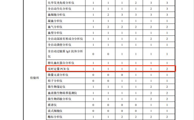 《標(biāo)準(zhǔn)》規(guī)定了縣級(jí)綜合醫(yī)院萬元及以上設(shè)備配置的基本原則,并根據(jù)6個(gè)不同規(guī)模的床位數(shù)量規(guī)定了包括CT、超聲、心電圖機(jī)、除顫儀等269種應(yīng)當(dāng)配備的醫(yī)療設(shè)備最低配置數(shù)量,涉及呼吸內(nèi)科、消化內(nèi)科等42個(gè)基礎(chǔ)科室。其中,核酸提取儀和實(shí)時(shí)熒光定量PCR儀成為發(fā)熱門診和檢驗(yàn)科等科室的基本配置,最少應(yīng)配備1臺(tái)。《標(biāo)準(zhǔn)》強(qiáng)調(diào),國(guó)家規(guī)定的只是設(shè)備配置數(shù)量的最低標(biāo)準(zhǔn),縣級(jí)綜合醫(yī)院可根據(jù)實(shí)際規(guī)模和需求合理配置。
