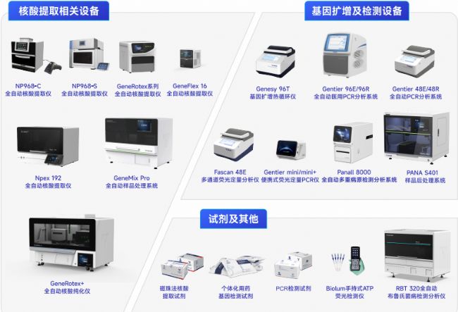 其中,Gentier 96E/96R/48E/48R全自動(dòng)(醫(yī)用)PCR分析系統(tǒng)、PANA 9600S全自動(dòng)核酸工作站、GeneRotex+全自動(dòng)核酸純化儀等多次入選“中國(guó)醫(yī)學(xué)裝備協(xié)會(huì)優(yōu)秀國(guó)產(chǎn)醫(yī)療設(shè)備名錄”;GeneRotex 96全自動(dòng)核酸提取儀和Gentier 96E全自動(dòng)醫(yī)用PCR分析系統(tǒng)先后入鏡央視《新聞聯(lián)播》及《焦點(diǎn)訪談》,成為2022年“奮進(jìn)新時(shí)代”主題成就展和2023年“兩會(huì)”生物醫(yī)藥環(huán)節(jié)的代表性畫面。