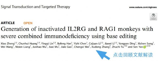 本期我們邀請了在《Signal Transduction and Targeted Therapy》發(fā)表題為“Generation of inactivated IL2RG and RAG1 monkeys with severe combined immunodeficiency using base editing”的作者-暨南大學(xué)博士研究生黃春輝,為大家進行分享交流!
