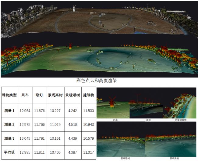 同步采集的三維激光雷達點云數(shù)據及高分辨率RGB影像,很好地可視化展示了地表的三維信息,并且還可測量得不同目標的厘米級高度信息并做統(tǒng)計。
