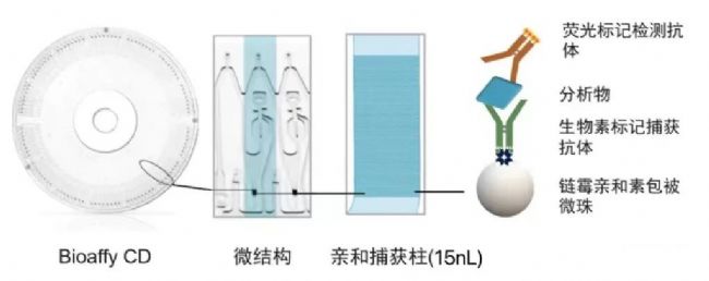 微流控Bioaffy CD是Gyrolab平臺的核心,每片CD上有96或112個微觀結構(microstructure),每個微結構中預填充15nL 包被鏈霉親和素的微珠與生物素標記的捕獲試劑相結合。根據CD型號不同,樣品體積包括20nL, 200nL, 1000nL和4000nL。Bioaffy CD支持多種免疫實驗模式,如直接法,間接法,夾心法,橋連法等。