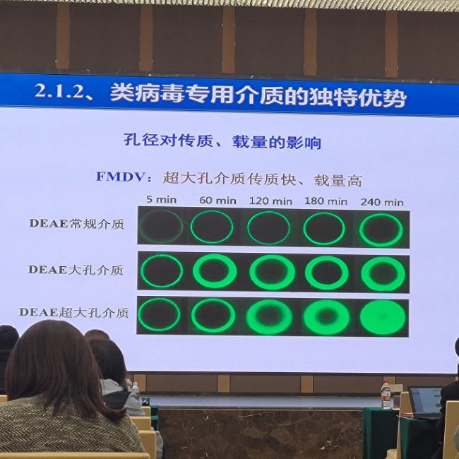 中科森輝微球技術(shù)(蘇州)有限公司受邀參加了本次大會中的“獸用生物制品研發(fā)和產(chǎn)業(yè)化大會”專業(yè)分會,精彩亮展會現(xiàn)場。中科森輝帶來獸用疫苗(包括寵物苗)分離純化層析介質(zhì)獨家產(chǎn)品類病毒專用介質(zhì)及His標簽親和介質(zhì)、離子交換介質(zhì)、復合模式介質(zhì)、疫苗純化預裝柱套裝和分離純化整體解決方案;中科森輝副總經(jīng)理黃永東博士在大會上作了題為《疫苗分離純化工藝開發(fā)與案例分享》精彩演講,針對獸用新型疫苗給出了專業(yè)的工藝推薦和經(jīng)驗分享。大會現(xiàn)場森輝展位吸引了眾多客戶、行業(yè)專家仁駐足展位,蒞臨交流,紛紛積極分享行業(yè)經(jīng)驗、探討行業(yè)發(fā)展新進展和前沿技術(shù),對中科森輝產(chǎn)品給出極高的評價。