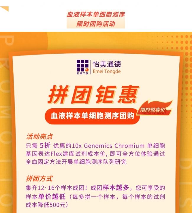 > 促銷 > 怡美通德全血樣本單細(xì)胞測(cè)序團(tuán)購(gòu),只需5折成本價(jià)
