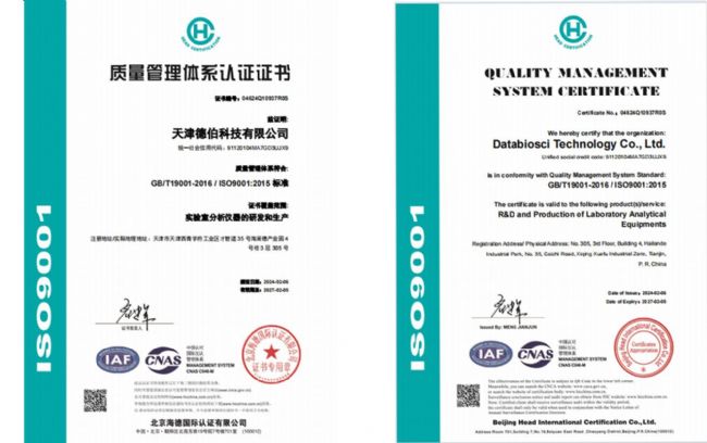 通過ISO9001:2015認(rèn)證,表明德伯科技(Databiosci)具備嚴(yán)格的質(zhì)量管理體系。