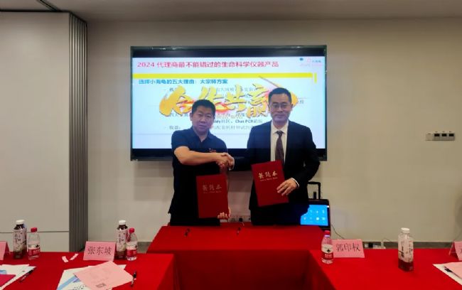 大會(huì)的重要環(huán)節(jié)之一是授權(quán)書頒發(fā)和戰(zhàn)略合作簽約儀式。聯(lián)合創(chuàng)始人、總經(jīng)理胡潘根先生為十余家代理商頒發(fā)了授權(quán)書,并與上海納奧生物科技有限公司亓立峰教授簽署了戰(zhàn)略合作協(xié)議。這標(biāo)志著小海龜科技與合作伙伴一起邁向了新臺(tái)階,雙方將攜手共進(jìn),共創(chuàng)輝煌。