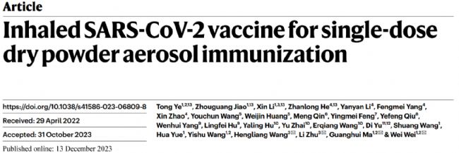 文章下載地址:Inhaled SARS-CoV-2 vaccine for single-dose dry powder aerosol immunization | Nature https://doi.org/10.1038/s41586-023-06809-8