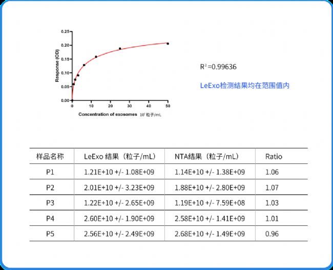 使用 LeExo 對(duì)于間充質(zhì)干細(xì)胞來源外泌體進(jìn)行定量檢測(cè),結(jié)果與 NTA 檢測(cè)結(jié)果高度一致。