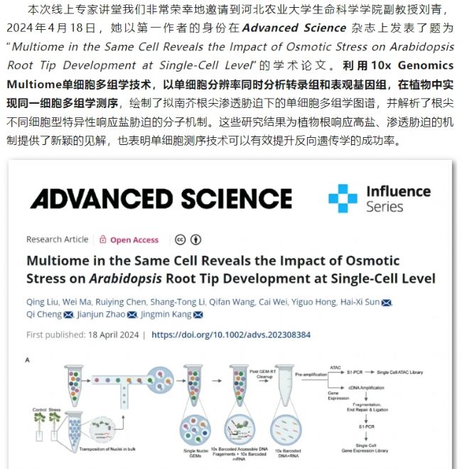 講座:單細(xì)胞多組學(xué)測序在植物非生物脅迫中的應(yīng)用