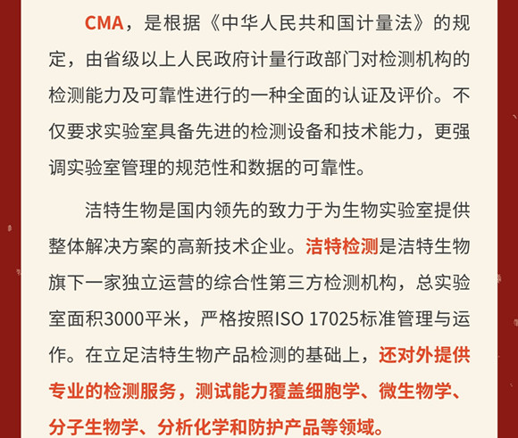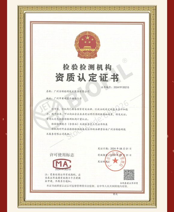 潔特成功獲得檢驗檢測機構(gòu)資質(zhì)(CMA)認定證書