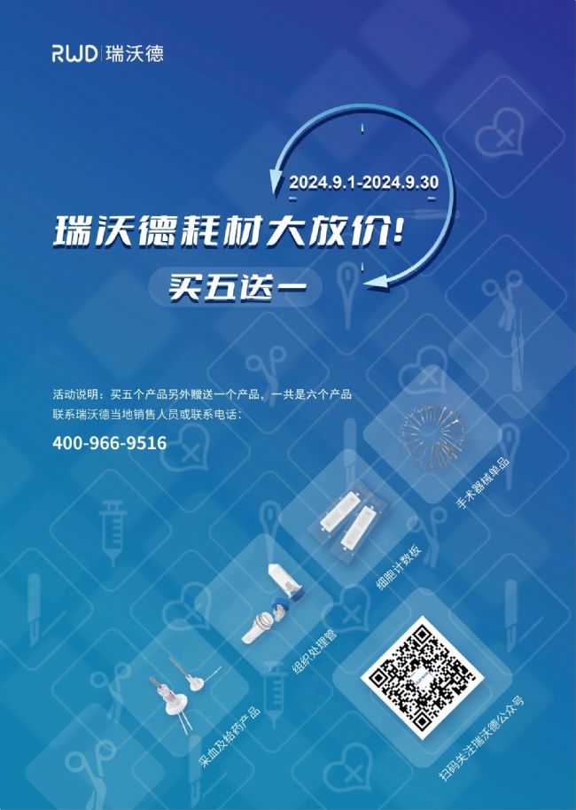 瑞沃德限定耗材產(chǎn)品 “買五送一”,采血給藥產(chǎn)品、手術(shù)器械、組織處理管、細(xì)胞計(jì)數(shù)板產(chǎn)品,多買多優(yōu)惠,千萬(wàn)不要錯(cuò)過這個(gè)薅羊毛的好機(jī)會(huì)!