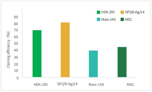 使用ProGro™國產胎牛血清進行細胞單克隆,不同細胞均表現(xiàn)出良好的細胞單克隆率。