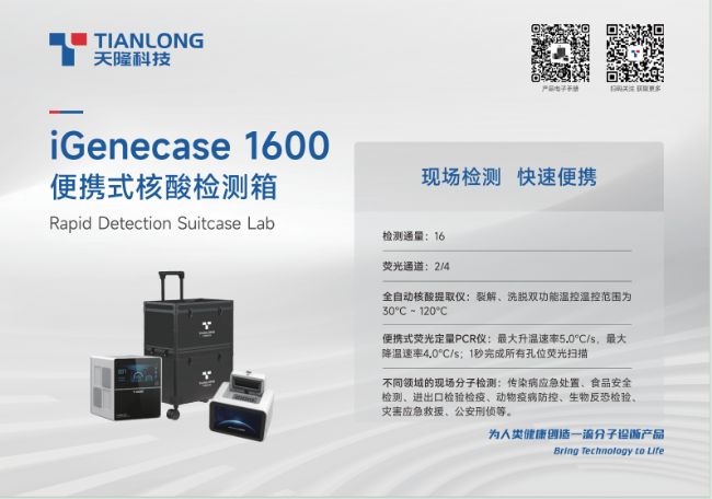 本次大會(huì),天隆科技將攜Panall 8000全自動(dòng)多重病原核酸檢測(cè)解決方案、iGenecase 1600便攜式核酸檢測(cè)箱、Gentier x3實(shí)時(shí)熒光定量PCR儀等重點(diǎn)產(chǎn)品于勁松廳F展位亮相,誠(chéng)邀各位專家同仁蒞臨交流!