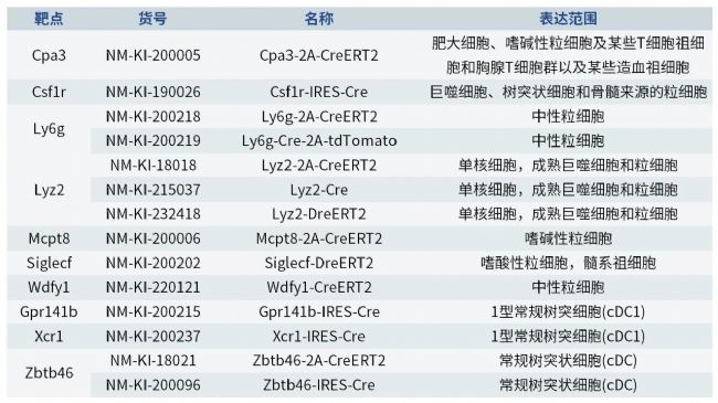 粒細(xì)胞、DC細(xì)胞等Cre工具鼠