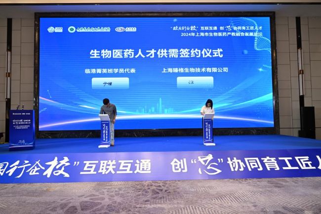 論壇期間,舉行了首期“臨港菁英班”人才簽約及成果路演活動,100%的簽約率充分展示了產(chǎn)教融合在人才培養(yǎng)方面的顯著成果。“臨港菁英班”人才培養(yǎng)成果展示暨生物醫(yī)藥人才供需雙選會吸引了眾多學生和企業(yè)的關(guān)注,為生物醫(yī)藥企業(yè)和院校搭建了一個交流與合作的平臺,為產(chǎn)業(yè)發(fā)展注入了新的活力。