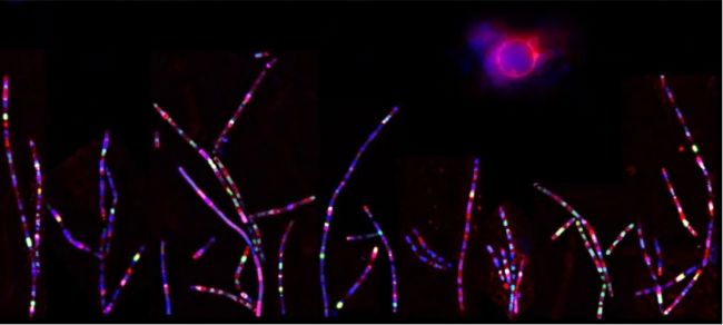 獲獎(jiǎng)作品:細(xì)菌無(wú)國(guó)界。常見(jiàn)土壤細(xì)菌枯草芽孢桿菌的正常棒狀絲狀細(xì)胞和失去細(xì)胞壁的球形細(xì)胞代表的熒光圖像。