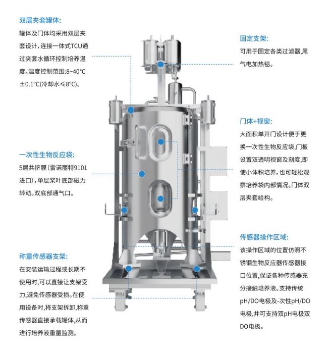▲中生天信和一次性生物反應器實物樣機整體及細節(jié)圖