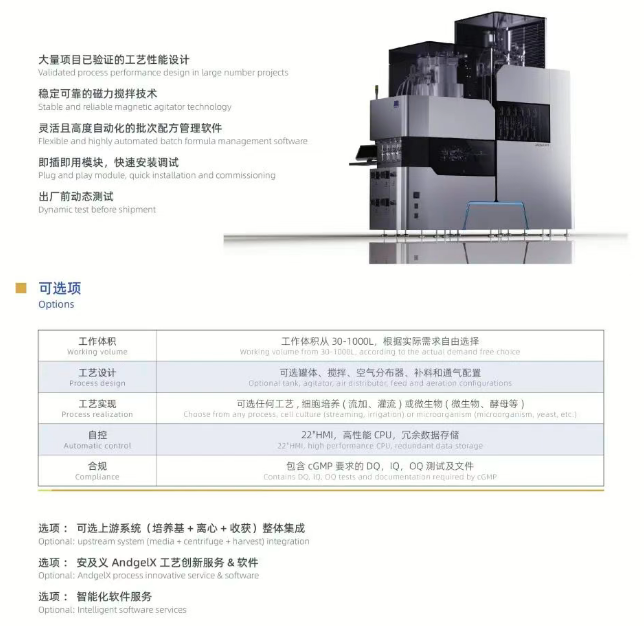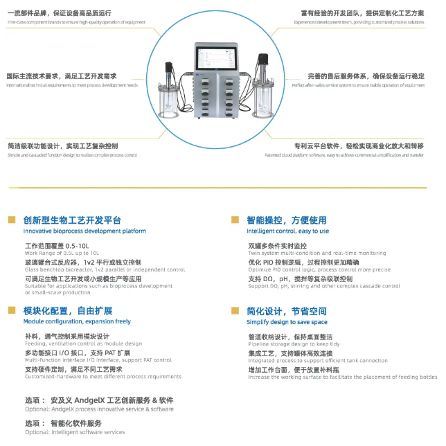 Andgel bioprocess R&D standard products include benchtop bioreactor and benchtop fermenter.