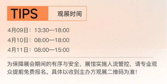 溫馨提示:為保障展會(huì)期間的有序與安全,展館實(shí)施人流管控,請(qǐng)專(zhuān)業(yè)觀眾提前免費(fèi)報(bào)名。具體以收到主辦方觀展二維碼為準(zhǔn)。(