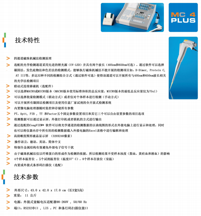 德國MC(美靈)半自動(dòng)血凝儀基本技術(shù)參數(shù)