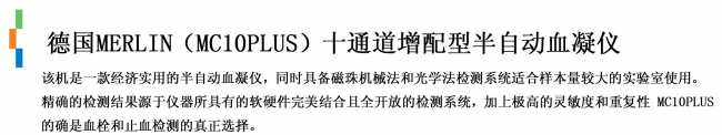 德國MC(美靈)半自動(dòng)血凝儀為中檢驗(yàn)證指南中指定使用設(shè)備并且被廣泛應(yīng)用于凝固活力,肝素含量等檢驗(yàn)項(xiàng)目中。