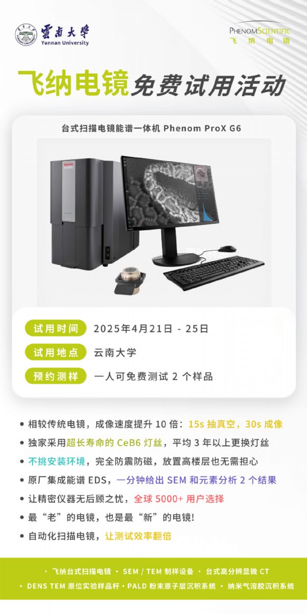 如今,這場(chǎng)備受矚目的活動(dòng)來(lái)到了我們美麗的云南大學(xué),將開展為期一周(4月21-25日)的掃描電鏡免費(fèi)測(cè)樣活動(dòng)。