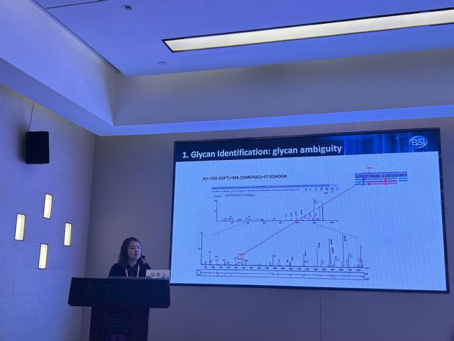會議上,BSI-China的負(fù)責(zé)人李文婷針對糖蛋白組研究的數(shù)據(jù)分析分享了Pitfalls in Glycoproteomics Data Analysis的報告,重點介紹了在糖蛋白質(zhì)組學(xué)和糖組學(xué)質(zhì)譜研究領(lǐng)域面臨的三個主要難題及PEAKS® GlycanFinder對應(yīng)的解決方案。