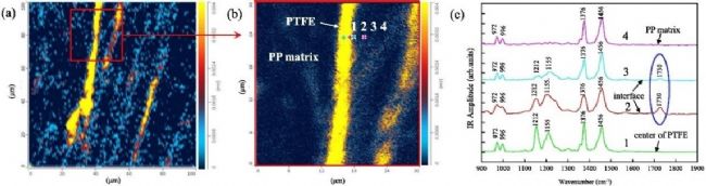 1210 cm-1處采集的PP/PTFE的O-PTIR光譜和顯微圖像