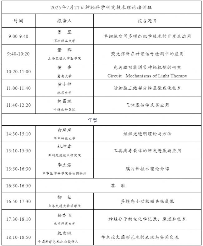 中國(guó)神經(jīng)科學(xué)學(xué)會(huì)神經(jīng)科學(xué)研究技術(shù)分會(huì)2025年度神經(jīng)科學(xué)前沿技術(shù)培訓(xùn)班將于2025年7月19日-24日在寧夏銀川召開。本次研討會(huì)和培訓(xùn)班涵蓋立體定位注射、腦電肌電記錄、光纖記錄、膜片鉗(理論+實(shí)操)、自由活動(dòng)動(dòng)物實(shí)時(shí)腦功能成像、光/藥理遺傳學(xué)(行為學(xué))、Miniscope、在體spike LFP記錄等諸多神經(jīng)環(huán)路相關(guān)的前沿技術(shù),講者均為該領(lǐng)域的知名專家。