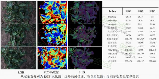 ®近地遙感系統(tǒng),采集分析了辣椒植株冠層的高光譜成像數(shù)據(jù)、LEDIF葉綠素?zé)晒鈹?shù)據(jù)及 Thermo-RGB 數(shù)據(jù):