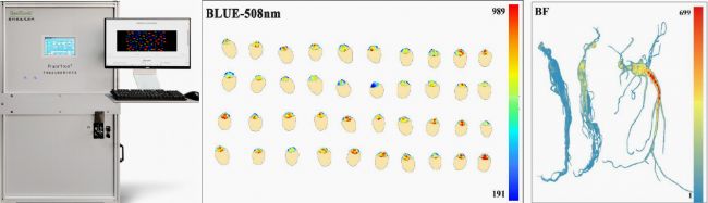 FluorTron®多光譜熒光成像技術(shù):脅迫誘導(dǎo)次級代謝產(chǎn)物熒光和葉綠素?zé)晒獬上?br />
