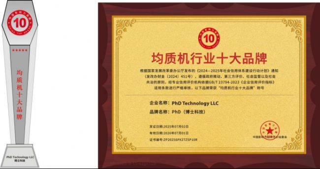 熱烈慶祝PhD科技被評為“均質(zhì)機行業(yè)品牌十強”!