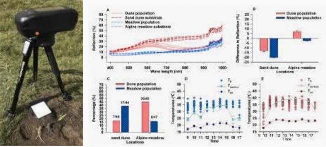 易科泰多功能高光譜成像技術在實驗動物活體熒光成像和反射光成像等領域應用廣泛。上圖為高光譜成像技術在蜥蜴體色適應性進化研究的應用:該成果以青藏高原分布的貴德沙蜥(Phrynocephalus putjatai)物種為研究對象,綜合野外生態(tài)實驗、基因組測序和遺傳驗證等手段,論證了貴德沙蜥體色本地適應的驅(qū)動力和分子機制。另外,高光譜成像應用于人體皮膚、組織切片樣品等方面也有巨大潛力。